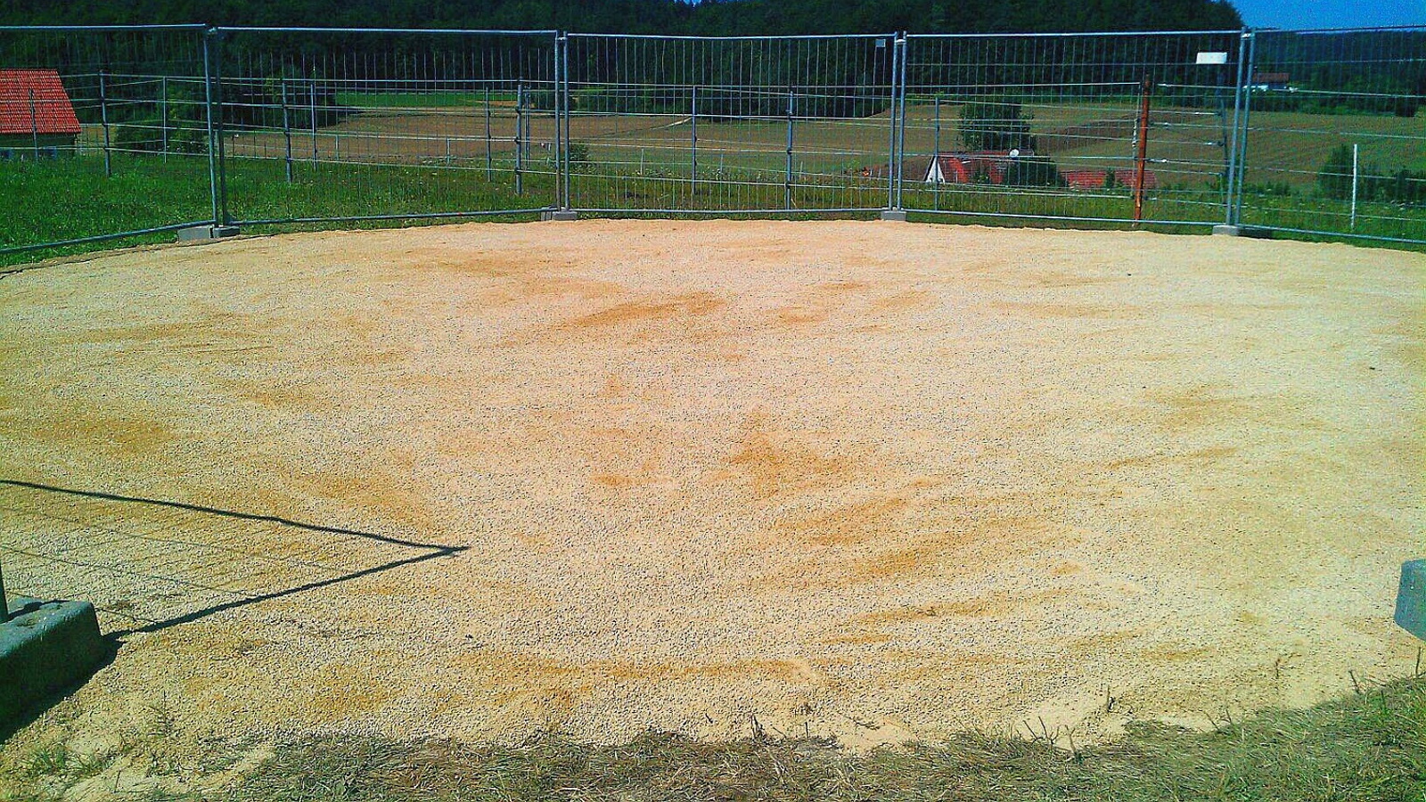 kleiner Roundpen mit 13,5 m Durchmesser, ausgestattet mit Sandboden