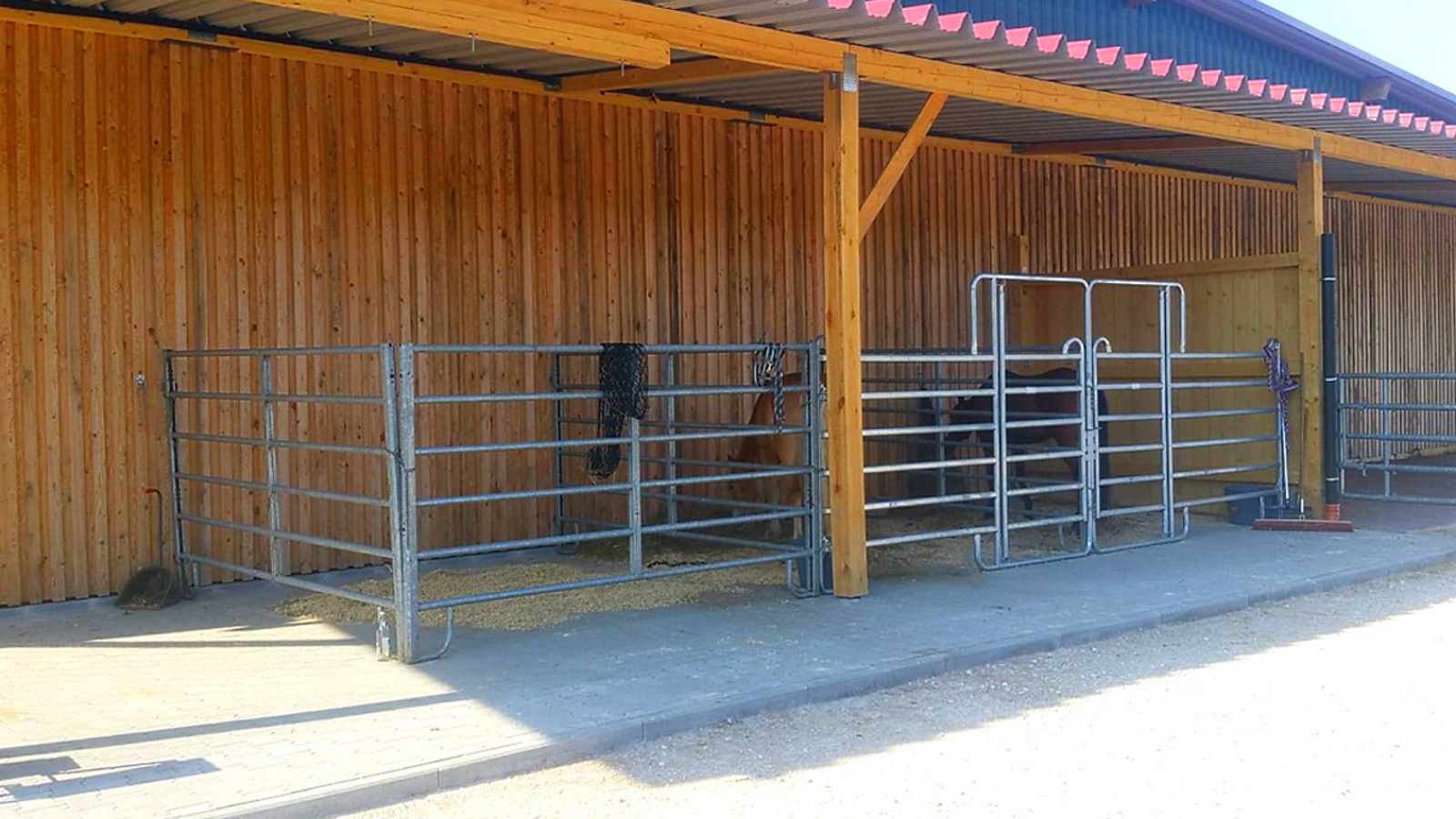 können in der Gruppe 5 bis 6 Pferde untergebracht werden. Getrennt sind maximal 2 bis 4 möglich.