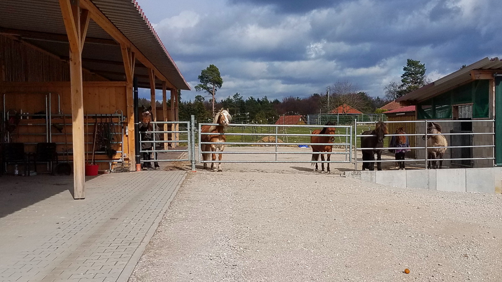 Je nach Jahreszeit haben wir die Möglichkeit 2 bis 15 Pferde auf unserem Paddock unter zu bringen.