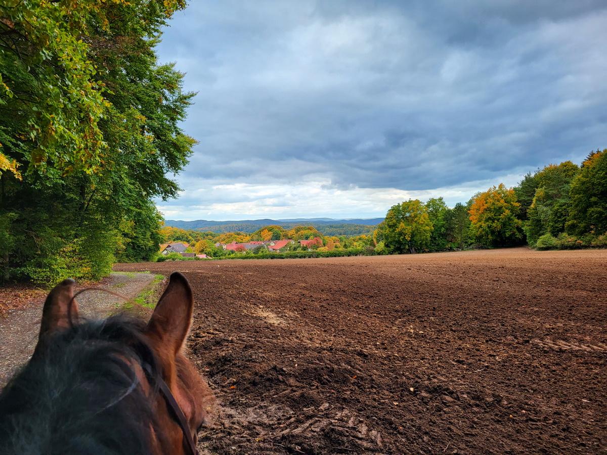 Gestärkt reiten wir auf den nächsten Höhenweg zu. Dieser zieht sich einmal durch den gesamten Glashüttener Forst. Auch hier